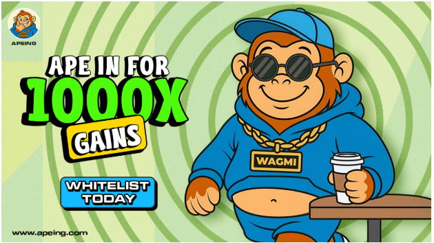 Apeing breaks into Bitcoin News conversations with a structure tailored for early-stage gains. Stage 1 launches at $0.0001, with a $0.001 listing target, creating a potential 10,000% ROI window if momentum aligns with market demand. Early buyers in top crypto coins historically outperform because they secure entries before the hype wave hits, and Apeing is architected around that same advantage.