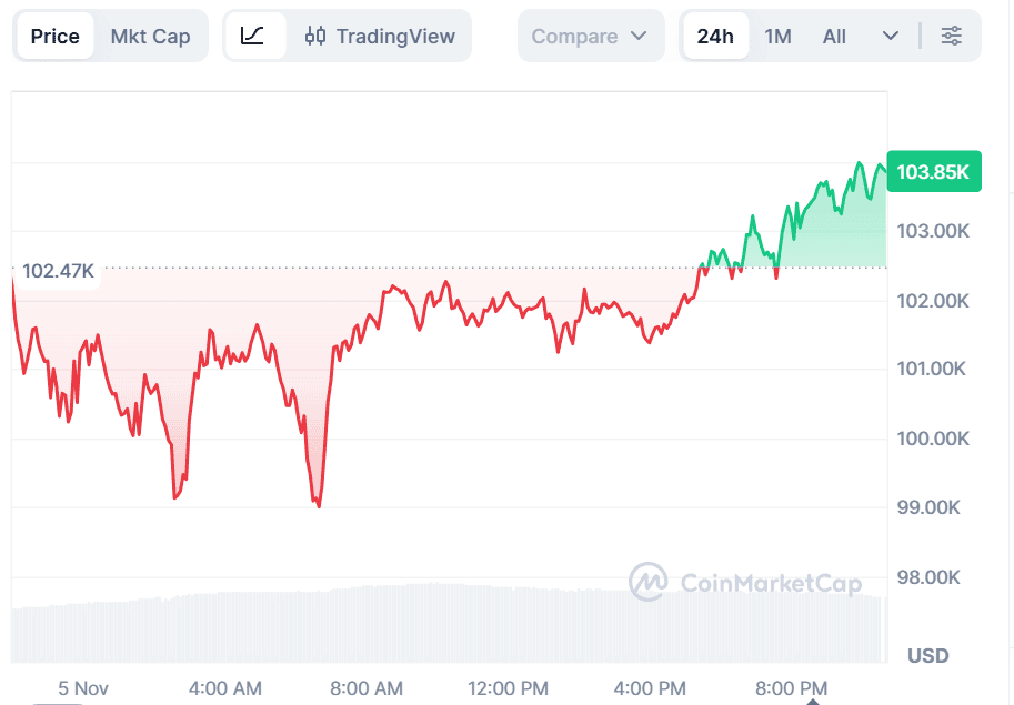 Bitcoin maintains its dominant position as the most trusted cryptocurrency asset, providing portfolios with stability and long-term confidence. While the best crypto presale today might offer quicker gains, Bitcoin's user-driven projections indicate optimistic movement throughout November. Based on current market sentiment, BTC could see a 5% increase soon, potentially reaching $101,466.14 as early as tomorrow. Mid-November estimates are hovering near $101,547.55 and may advance to $101,860.23 by early December. These short-term increases highlight continuous momentum despite unpredictable market conditions.
