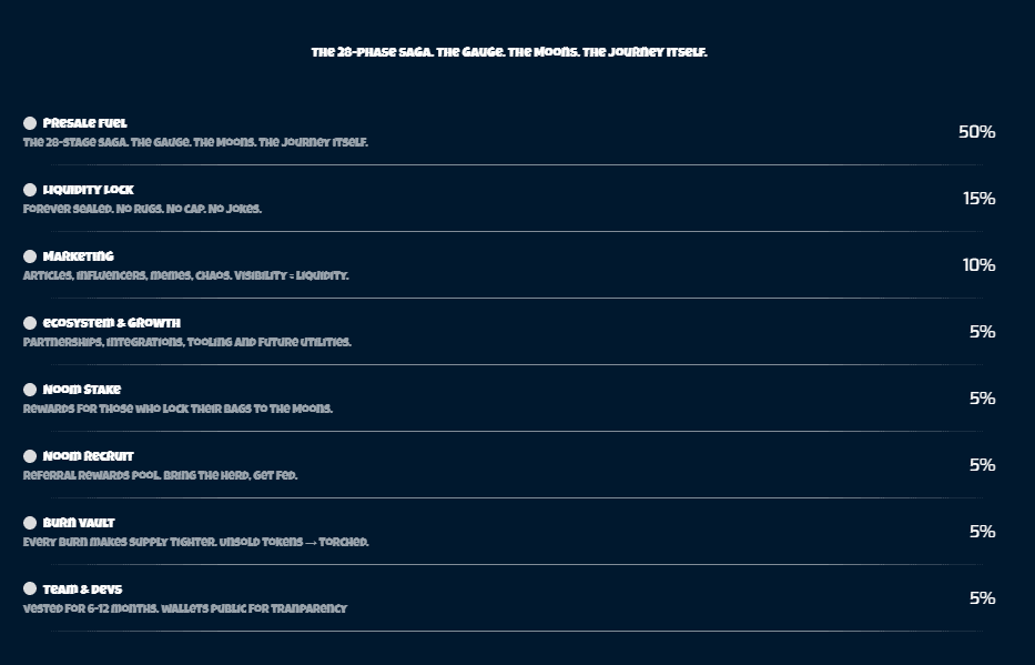 Noomez uses a fixed supply of 280 billion tokens, with half dedicated to the presale. No hidden emissions. No unpredictable minting.