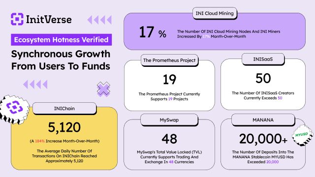These metrics indicate that InitVerse's growth is a result of multifaceted dynamics involving users, developers, and capital flows. Capital is being injected into INIChain and MANANA, driving transactions and token burns. Creators are contributing content, generating real-world use cases, and miners are joining the hashrate pool to ensure system security. Each component contributes to strengthening the ecosystem's positive feedback loop.