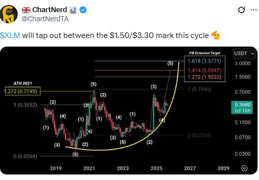 $XLM will tap out between the $1.50/$3.30 mark this cycle 🫡 pic.twitter.com/PoCfJVraqW