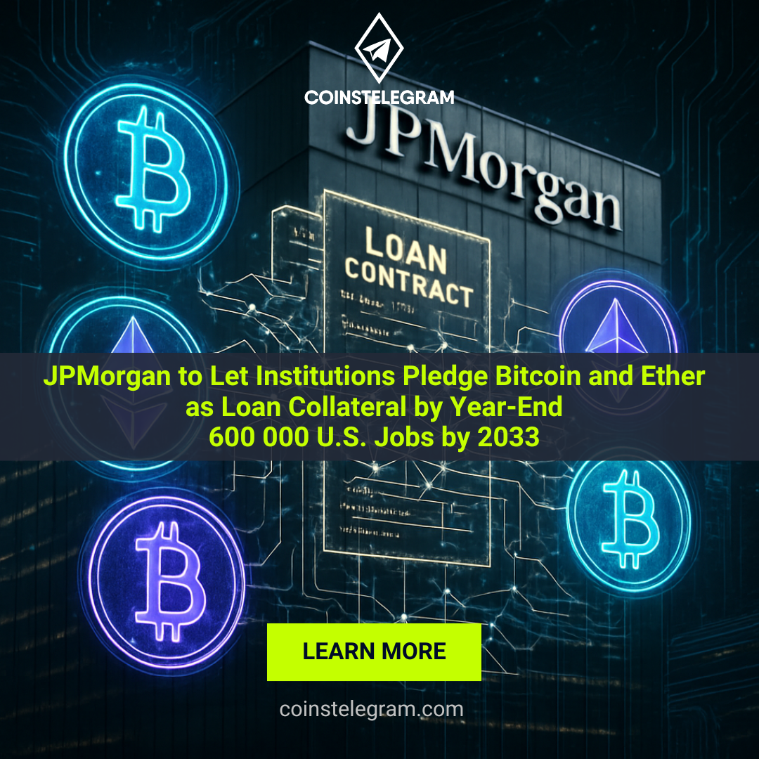 In a landmark move, JPMorgan Chase is preparing to permit institutional clients to use Bitcoin (BTC) and Ethereum (ETH) holdings as collateral for loans before the close of 2025.