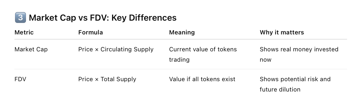 Why it matters: FDV shows the risk of future dilution. If a lot of tokens are locked and later released, the price could drop significantly.