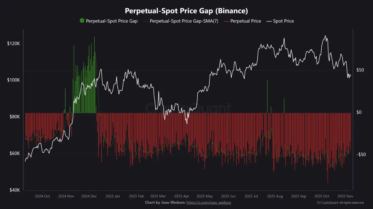 According to a new CryptoQuant report shared by analyst BorisD, Binance’s spot market has maintained a structural premium over its perpetual futures for an extended period. This indicates that spot-side demand remains dominant even amid lower retail speculation.