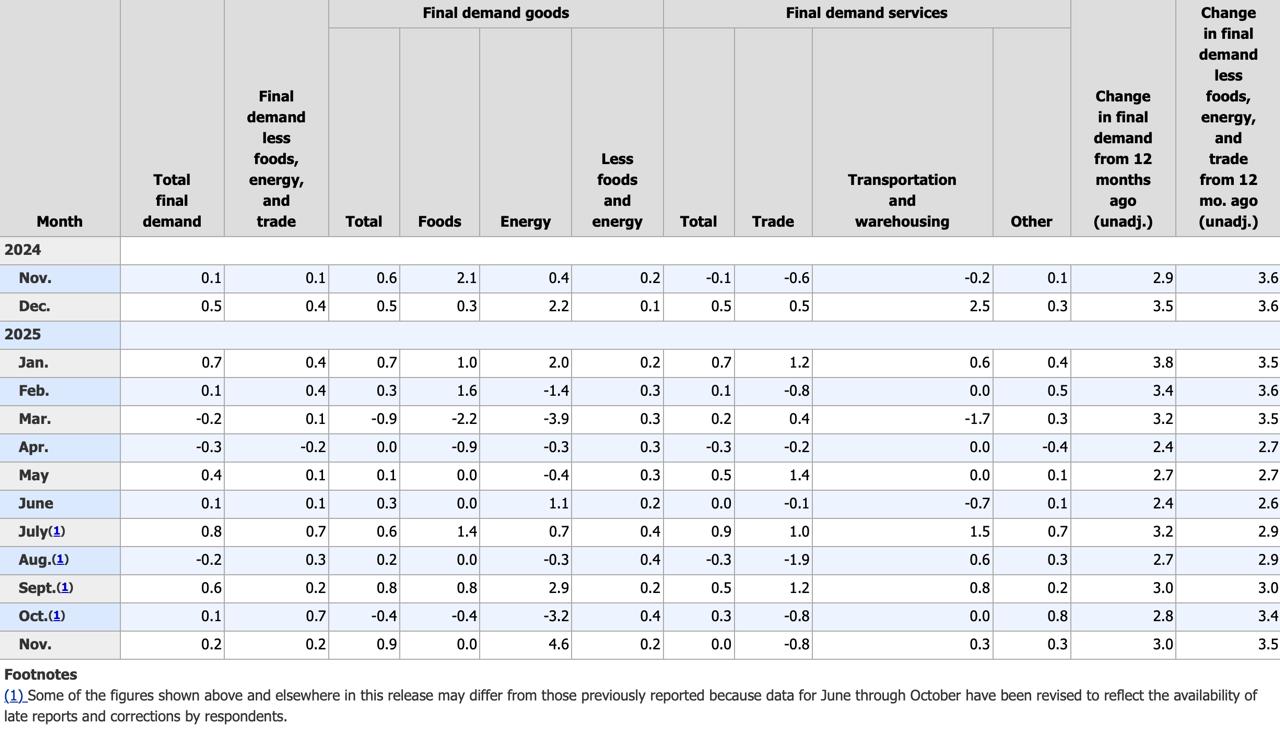 The Producer Price Index (PPI) report for November 2025, released by the U.S. Bureau of Labor Statistics, showed producer-level inflation firming modestly, driven primarily by a sharp rebound in energy prices, while underlying inflation pressures continued to build.