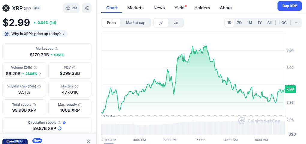 Current market data indicates XRP is trading at around $2.99, holding support levels that suggest bullish momentum may continue. At the same time, MAGAX Stage 3 presale momentum reflects early FOMO, which could drive price surges if adoption and virality sustain.