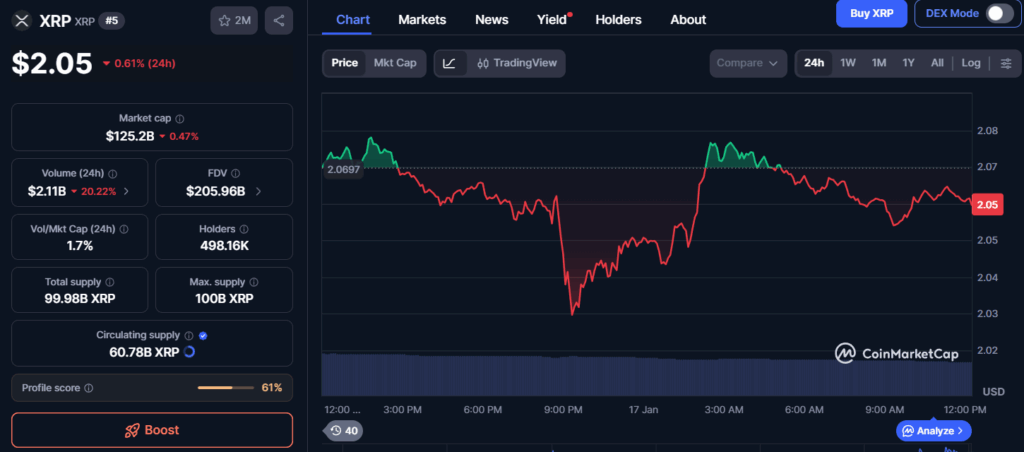 XRP is holding around $2.06 even after a slight 2.1% daily pullback. The project’s market capitalization remains firm at $125.30 billion. According to recent reports, Binance exchange reserves for XRP hit a two-year low, which could help ease sell pressure. Many traders are monitoring the latest XRP prediction models from institutional research groups. So far, spot ETF flows reached $1.37 billion with no outflow days reported, showing steady market interest. If momentum builds, XRP may test the $2.14 resistance soon.